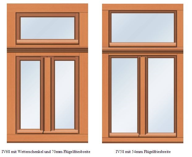 Um das Verhältnis bzw. die Bedeutung von Ansichtsbreiten besser einschätzen zu können, steht im Internet unter https://www.pax.de/glasflaechenrechner ein Glasflächenrechner zur Verfügung. Das Fenster im oben abgebildeten Fachwerkgebäude würde demnach unter Verwendung eines IV68-Profils mit echtem Wetterschenkel ca. 25 % weniger Glasanteil aufweisen, als ein Fenster mit reduzierten Flügel- und Blendrahmenbreiten. Vereinzelt werden noch immer - auch in der Denkmalpflege - Fenster mit Regenschutzschienen angeboten. Hier wäre der Verlust an lichter Glasfläche über 30 %.