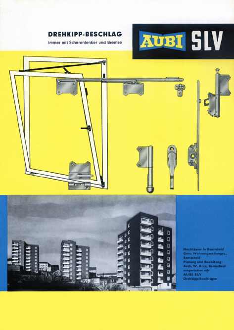 Auf der Kölner Eisenwarenmesse 1959 wurde dann der „SIEGENIA-Optimal“ erstmals der Fachöffentlichkeit vorgestellt. Bei diesem ab Anfang 1960 produktionsreifen Beschlag handelte es sich um einen verdeckt liegenden Einhand-Drehkipp mit zwangsgesteuerten Ausstellscheren.