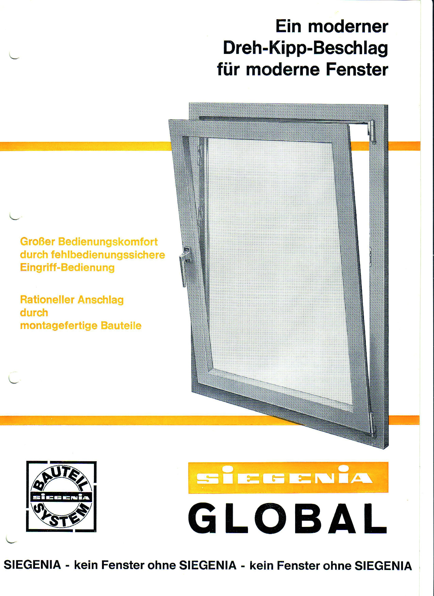 Schmaler im Falz wurde es 1972 mit dem „SIEGENIA-Global“, dem ersten Drehkippbeschlag mit 18 mm Stulpbreite, sowie mit dem „SIEGENIA-Favorit“ für Holzfenster. Das Favorit-Programm für Holzfenster lag in sechs verschiedenen Einbauvarianten (V – VM – S – SM – SW – SR) vor. Kennzeichnend für diesen Beschlag war die fehlbedienungssichere Eingriff-Bedienung, die Benutzung montagefertiger Bauteile mit 16 mm Stulpbreite sowie die Verwendung nachregulierbarer Mittelverschlüsse.