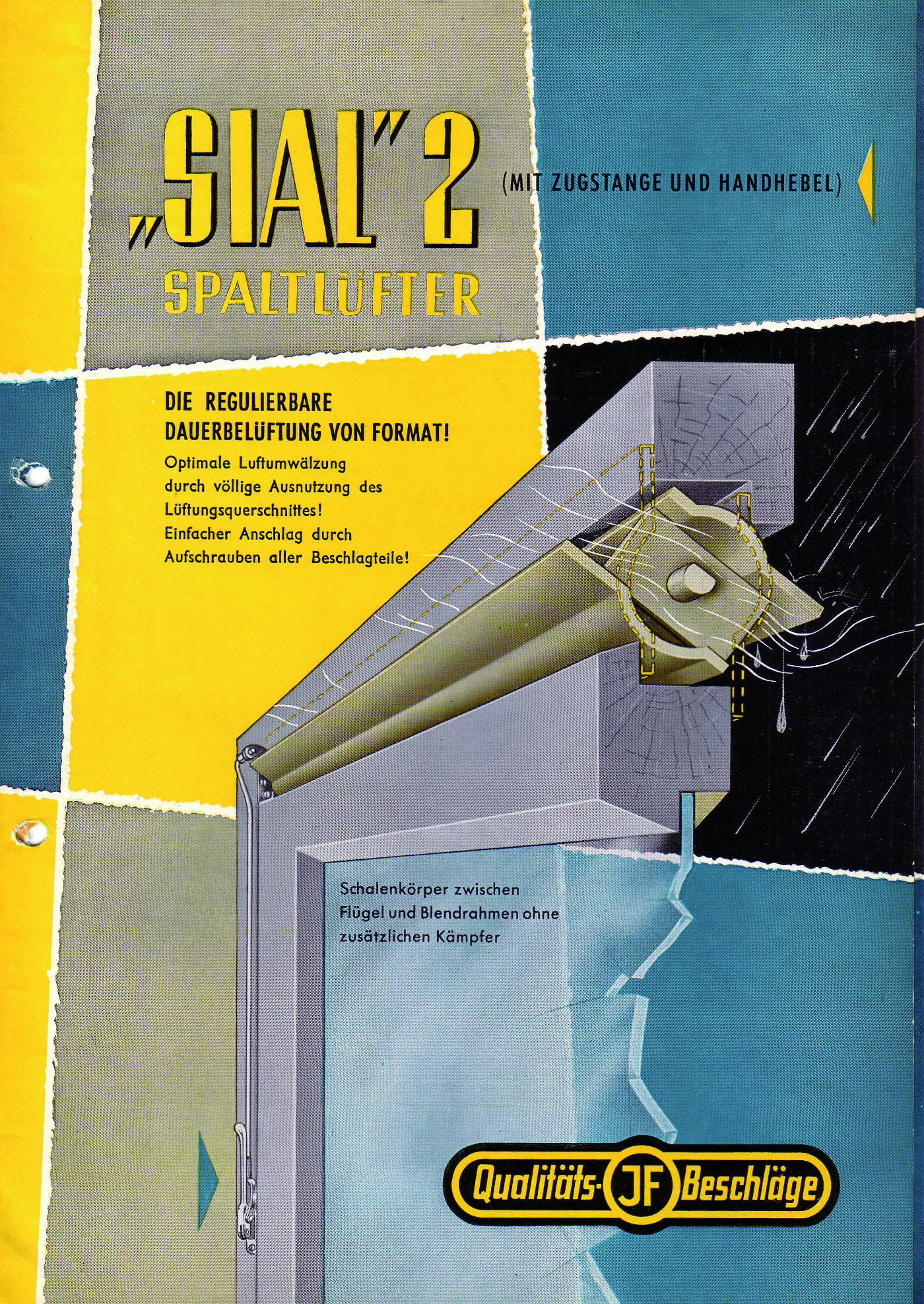 Auch damals schon beschäftigte sich das Siegener Unternehmen neben der Beschlagtechnik mit dem Thema professionelle Lüftungssysteme in Fensterelementen. Das Ergebnis war Mitte der 60er Jahre der erste in Serie gefertigte Spaltlüfter „Sial 2“, mit dem ein Luftaustausch ohne Öffnen des Fensterflügels möglich wurde. Betätigt wurde dieser Lüfter über ein am Flügel liegendes Gestänge.