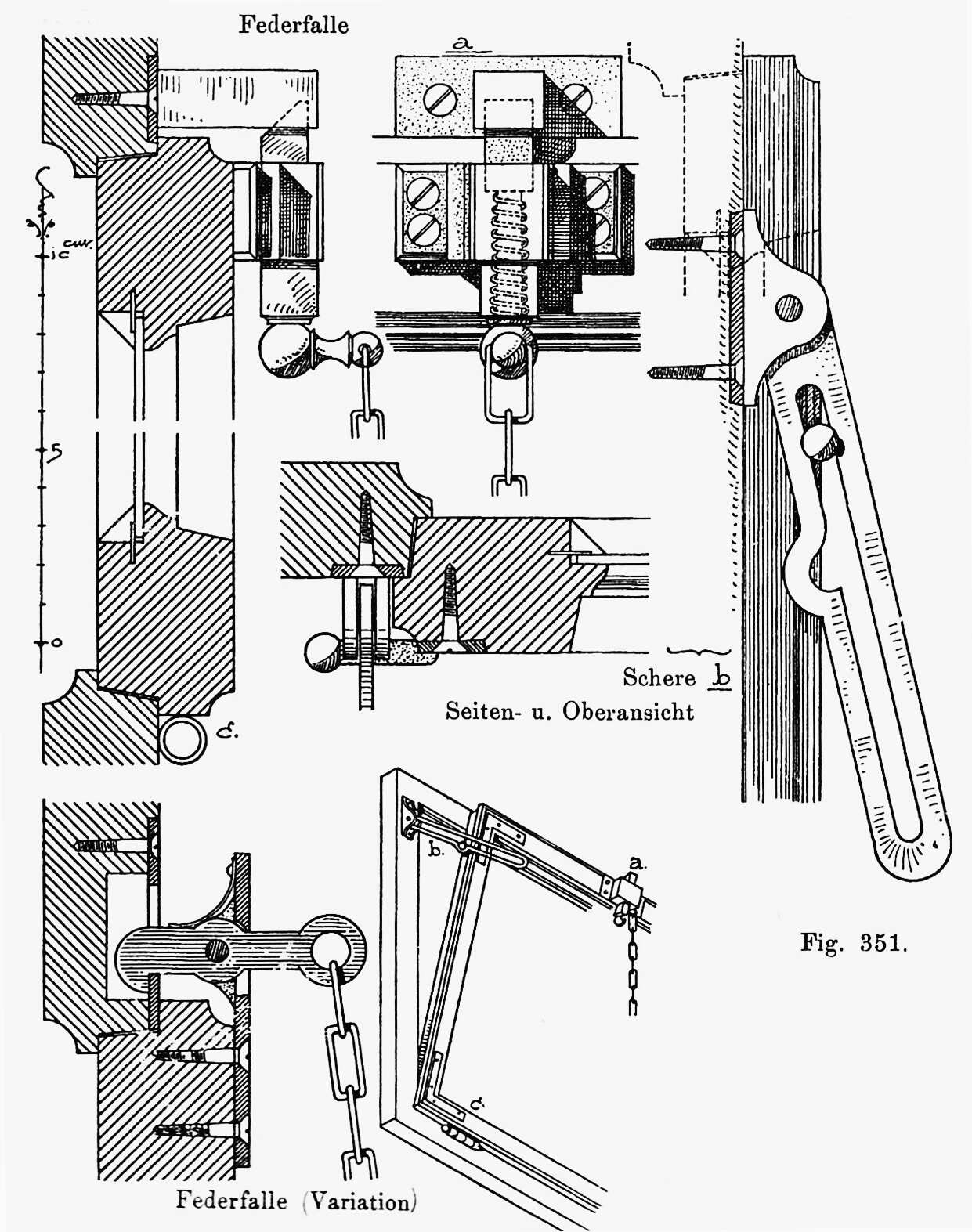 Noch mehr als die historischen Verschlüsse sind die zahlreichen anderen Beschläge der damaligen Zeit gefährdet, die die unterschiedlichsten Funktionen zu erfüllen hatten. Neben Bändern, Kloben, Riegeln und Schlössern waren das Klappfensterverschlüsse, Federfallen, Scheren und andere, die einen großen Erfindungs- und Formenreichtum dokumentieren.