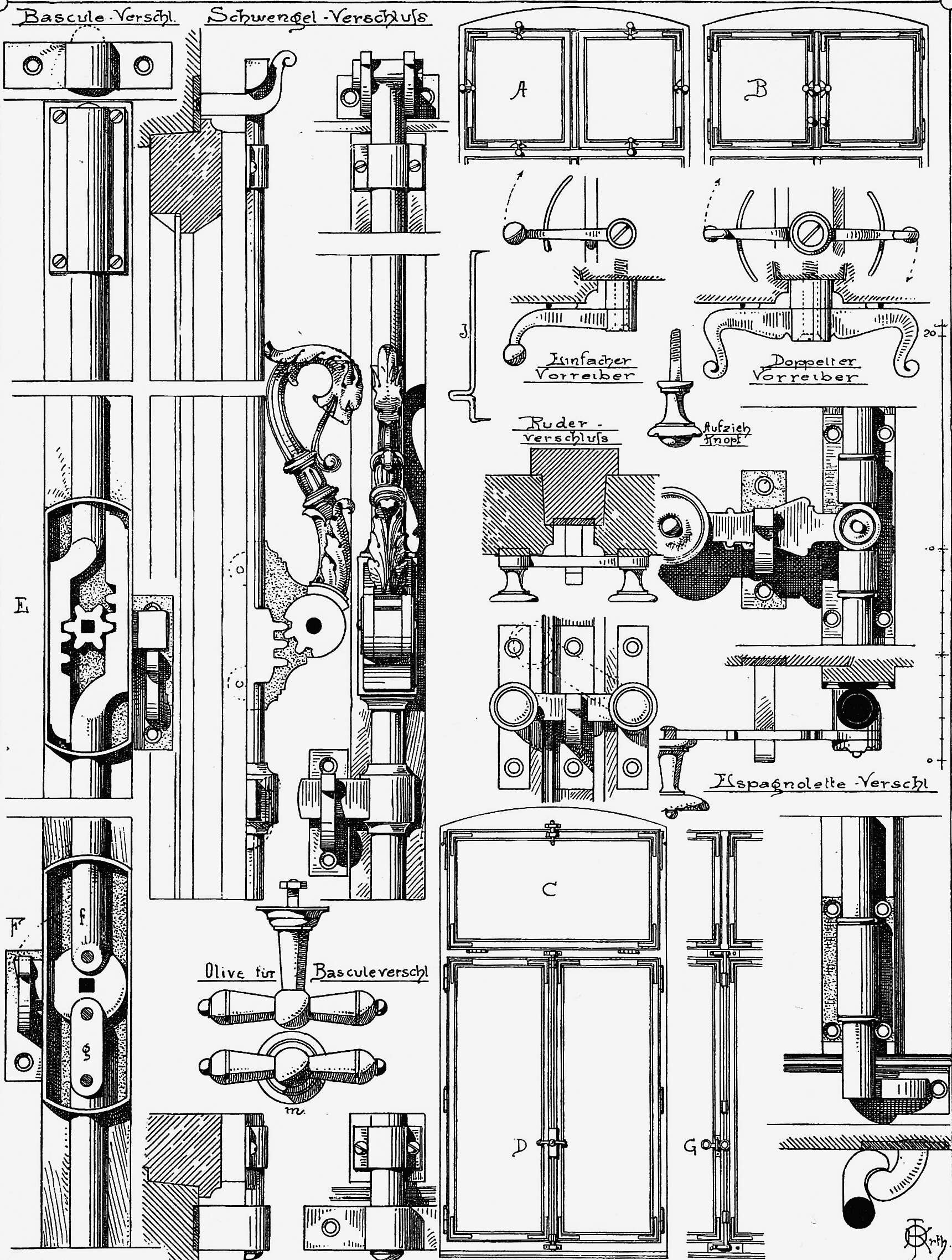 Wenn von den Fenstern der Gründerzeit und des Historismus die Rede ist, wird die Beschlagtechnik meist unbeachtet übergangen. Dabei gab es gerade auf diesem Gebiet eine große Vielfalt, die umso eher ins Auge fallen müsste, weil die Beschläge, im Gegensatz zum heute Üblichen, damals überwiegend sichtbar auf Blend- und Flügelrahmen angebracht waren.