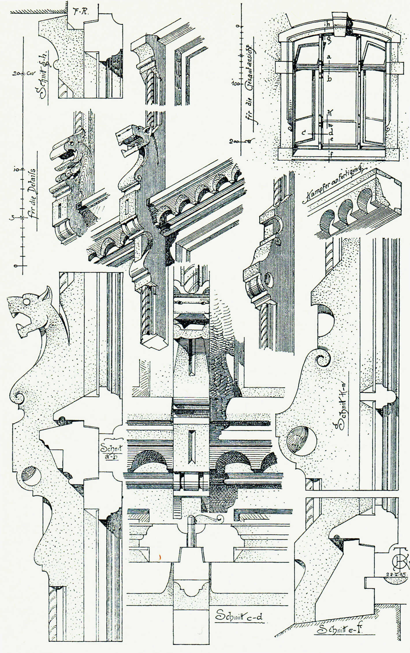 Die Anwendung historischer Gestaltungsmotive konzentrierte sich nämlich vor allem auf die Umrahmung der Fensteröffnungen, d.h. die Fenstergewände, die bei einer nur oberflächlichen Betrachtung der Architektur stärker ins Auge fallen, wobei die kreativen Aspekte bei der Umformung überlieferter Stilelemente leicht übersehen werden.