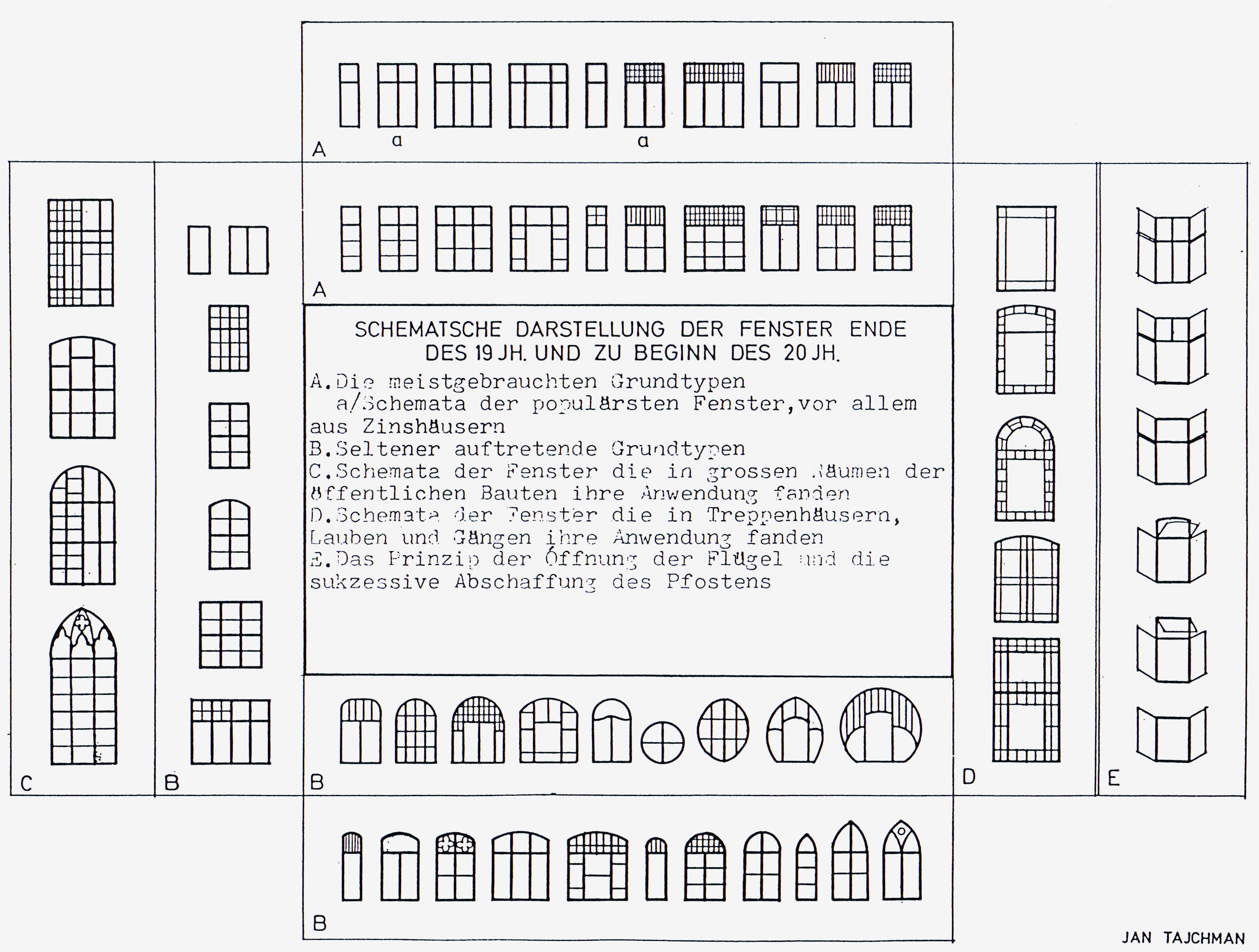 Wie wir sehen, handelt es sich bei den Grundtypen der Fenstergestaltung, die insbesondere im Massenwohnungsbau der Mietshäuser und des Wohnsiedlungsbaus von Arbeitersiedlungen verbreitet waren, zunächst um schlichte Weiterentwicklungen klassizistischer Fenstertypen.