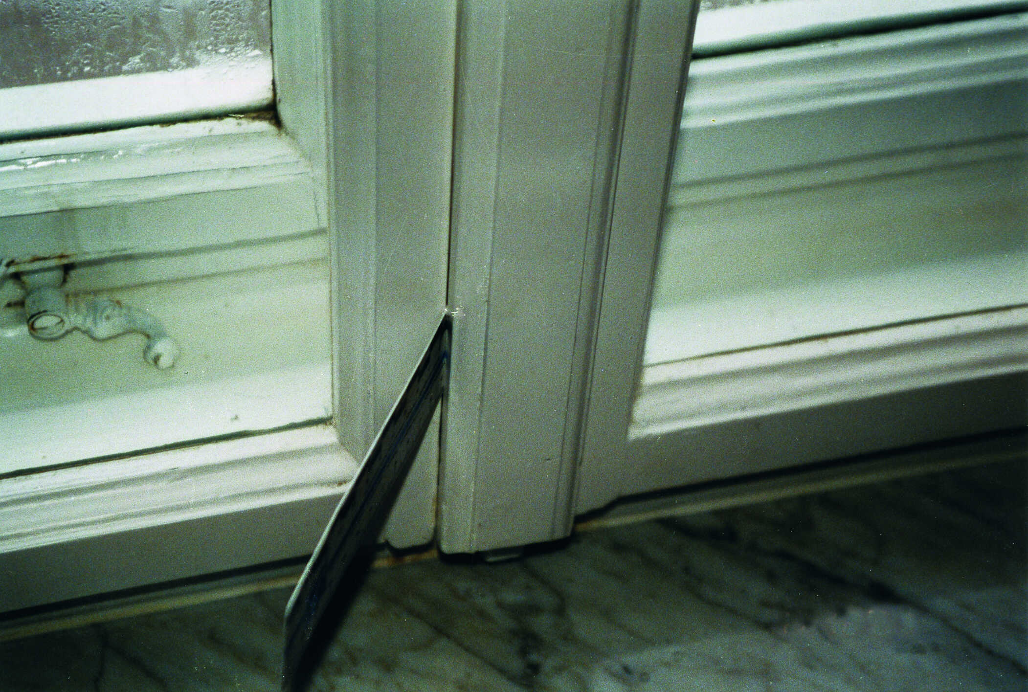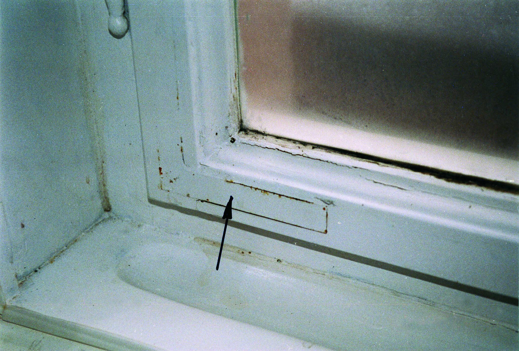 Es fehlt der Blendrahmen über einen Streichdraht oder ein Streichblech festriegelt" >Vorreiber. Dadurch ist dieses Fenster unzureichend luftdicht. Insbesondere mit Feuchte geladene Raumluft kann daraufhin nahezu ungehindert in den Scheibenzwischenraum des Kastenfensters gelangen. Als Folge daraus entsteht – hauptsächlich in der kalten Jahreszeit – massiver Tauwasserbefall am Außenfenster!