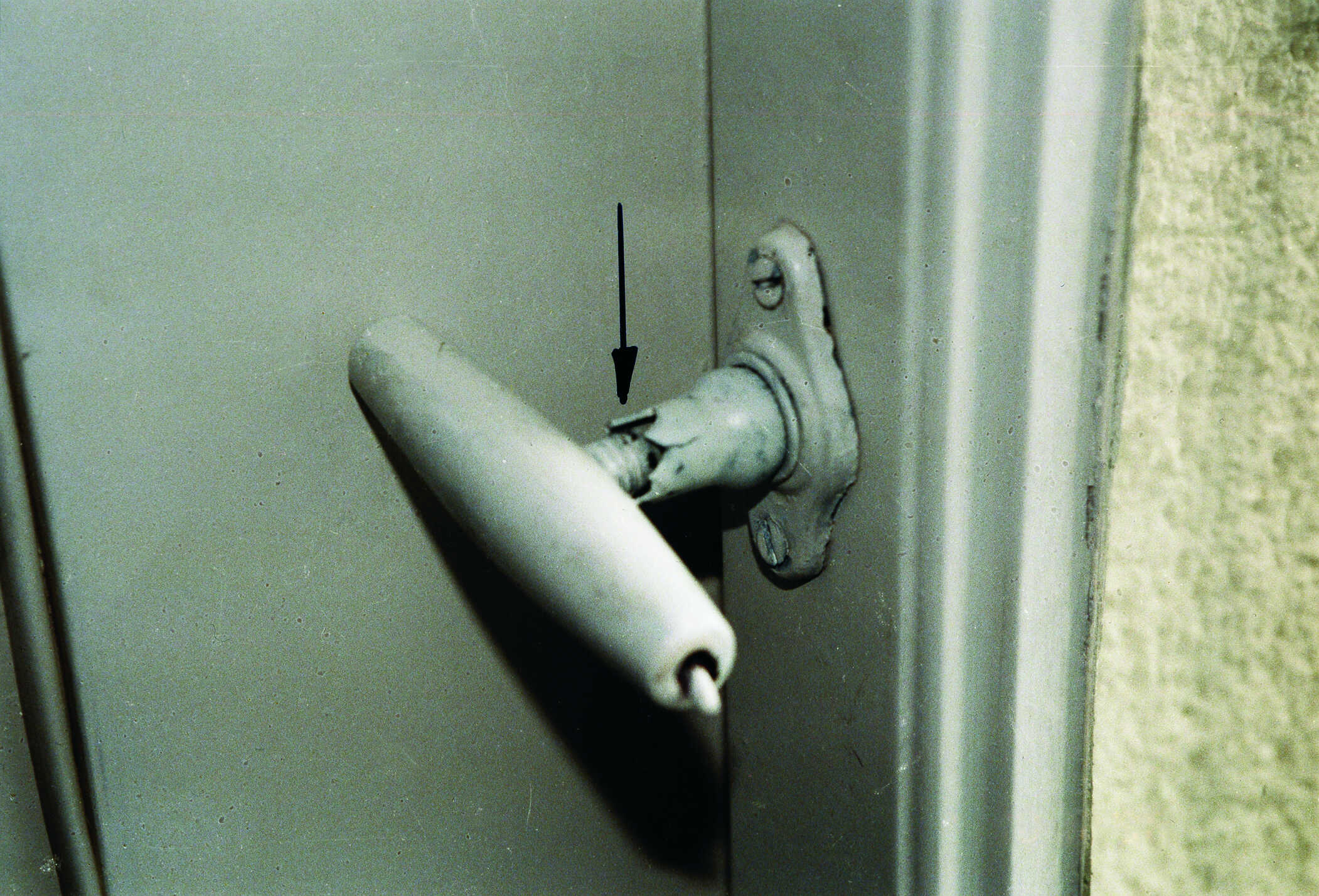 Bei den Restaurierungsarbeiten wurde auch hier der Keildreher entfernt. Bei der anschließenden Neumontage wurden jedoch der Nutzungs- und Gebrauchstauglichkeit wenig Beachtung geschenkt. Ein ausreichendes Verschließen dieses Fensterflügels ist bei dieser Ausführung nicht möglich.