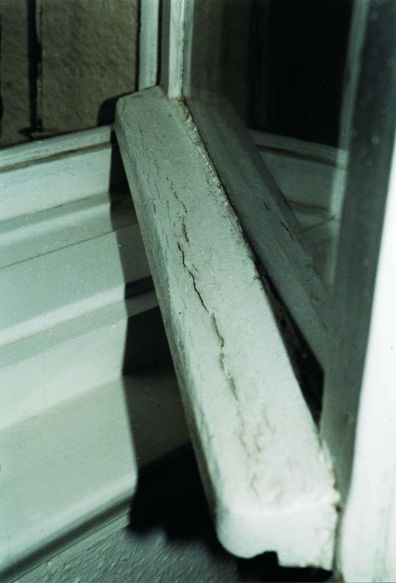 Im Rahmen der Restaurierung wurde dieser Wetterschenkel unzureichend behandelt und für das Aufbringen des Neuanstriches unzureichend vorbereitet. Etwa 3 Monate nach erfolgter Restaurierung ist dieses Foto entstanden. Deutlich ist zu erkennen, dass der Anstrich mit zahlreichen Rissen behaftet ist. Die Nutzungs- und Gebrauchsdauer des Fensters wird dabei deutlich eingeschränkt.