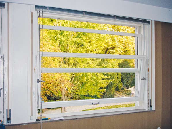 2. Die Belüftung. Sauerstoff soll in den Raum gelangen, Schadstoffe müssen abgelüftet werden. Voraussetzung hierfür ist ein Mechanismus zum Öffnen und Schließen des Fensters.