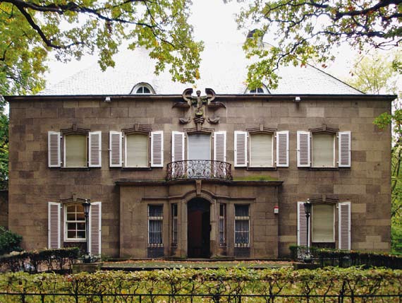 Abb. 69 zeigt die Villa eines Duisburger Kieshändlers. Eine in Ansätzen durchaus der Moderne verpflichtete Fassade mit konservativem Schmuckwerk in der Fensterrahmung und dem Gitterdekor ordnet das Gebäude zeitlich ein. Das Fenster selbst wirkt unspektakulär, mit schlichter Profilgestaltung (Abb. 70, 71).