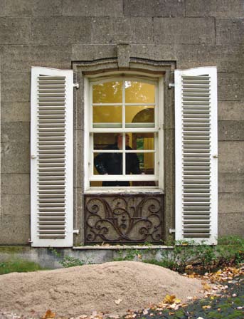 Der Sinn der Abb. 28 ist nicht nur, eine kluge und hübsche Praktikantin der Krefelder Denkmalpflege zu präsentieren, sondern der Hinweis, dass bei der Konzeption eines Vertikalschiebefensters das menschliche Maß von wesentlicher Bedeutung ist und war: Durch die mittige Teilung des Fensters muss die Bemaßung so gewählt werden, dass eine Betrachterin durchschnittlicher Körpergröße stehend, ohne sich zu bücken oder zu recken, den Blick nach draußen frei schweifen lassen kann und kein Brett resp. Flügelholz vor dem Kopf hat.