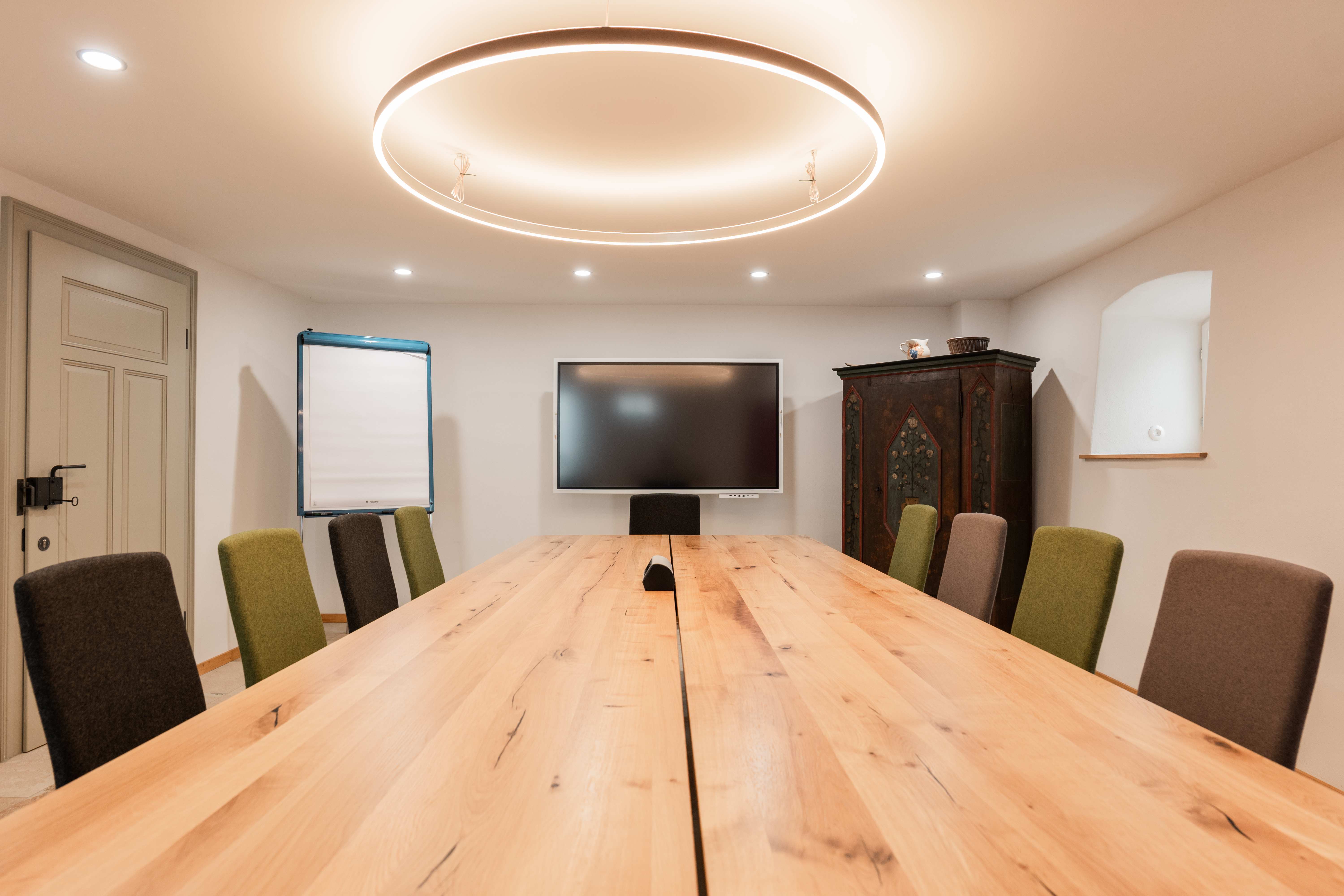 Zwei weiteren Zimmer im Erdgeschoss sind das ehemalige Schlafzimmer im vorderen Bereich, welches jetzt als Büro genutzt werden kann, und der als Tagungsraum nutzbare ehemalige Stall im hinteren Bereich.