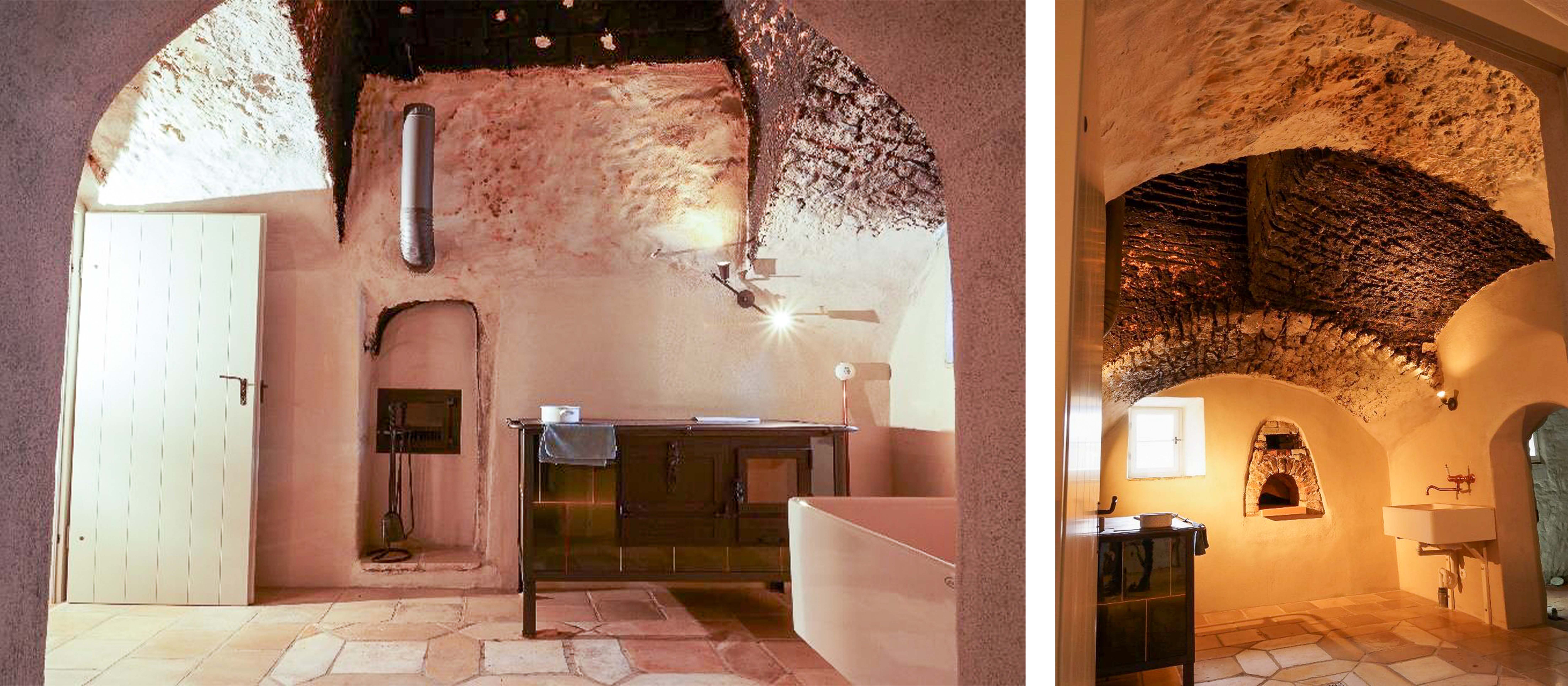 Weitere Highlights sind die eingebaute Sauna sowie die angestrahlte, in Szene gesetzte steinerne Kuppel der Rußkuchl.